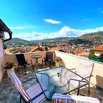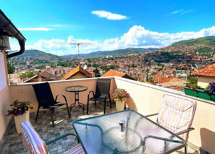 The self-catering facilities feature a kitchen with an electric kettle, an oven, and glassware. The nearest airport is Sarajevo, 5 km from Garden Free Parking Apartment, and Komatin bus station is just 10 minutes' walk away. Guests can relax on a terrace.